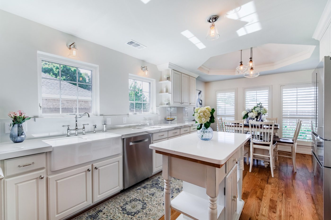Luxury kitchens are designed to support both daily routines and entertaining. Thoughtful layouts prioritize clear workflow zones, generous circulation space, and intuitive placement of appliances. Islands often serve multiple purposes—food preparation, casual dining, and social interaction—while secondary prep areas or hidden pantries help maintain a clean, uncluttered appearance. In Dallas TX and surrounding areas, open-concept layouts remain popular, allowing the kitchen to flow seamlessly into adjacent living spaces.